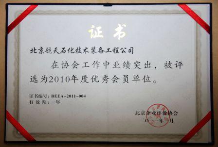 我公司經過北京質量協會評價中心組織的綜合測評后,以用戶滿意度指數90.66、用戶忠誠度指數93.18的優秀成績榮獲“2010年度北京企業評價協會優秀會員”榮譽稱號(證書編號:BEEA-2011-004)。